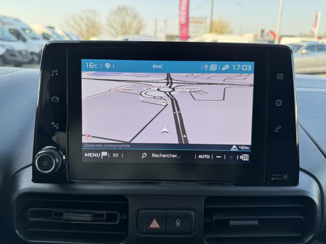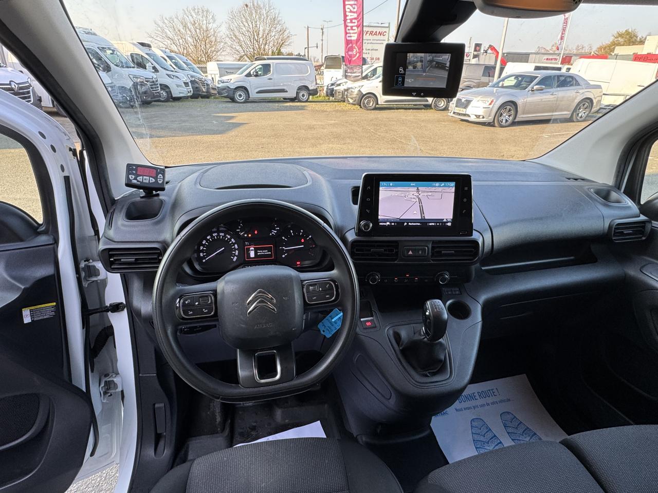 6 anneaux d'arrimage en zone de chargementABS avec répartiteur électronique de freinage (REF) et aide au freinage d'urgence (AFU)Aide au démarrage en côteAirbag frontal conducteurAllumage automatique des projecteursBac de porte avantBaguettes de protection latérales noires teintées masseBoîte à gants inférieure ouverteBoîte à gants supérieure Top Box fermée (réfrigérée si climatisation)Bouchon / trappe à carburant verrouillablesCabine Extenso (banquette 2 places, place centrale avec dossier rabattable et tablette écritoire orientable, rangement sécurisable sous siège central, place latérale escamotable pour charge longue)Capucine transversale de rangement ouverteCITROËN Connect Box avec Pack SOS et assistance inclusClimatisation manuelleCloison pleine fixe (avec crochet porte-habit)Condamnation centralisée avec plip 3 boutonsContrôle dynamique de conduite (ESP) avec fonction anti-patinage (ASR)Coques de rétroviseurs noires teintées masseDétection de sous-gonflage indirecteEclairage d'accueil et d'accompagnementEssuie-vitre avant avec système de lavage 'Magic Wash'Frein de stationnement électriqueKit mains libres Bluetooth et prise USBLève-vitres avant électriquesOrdinateur de bordPack ChantierPack Zone de chargementPare-chocs avant et arrière noirs teintés massePeinture opaque Blanc BanquisePneumatiques 215/65 R16 Mud & SnowPoignées de portes extérieures noires teintées massePorte latérale droite coulissante tôléePortes arrières battantes tôlées 60/40 avec ouverture à 180°Prise 12 V sur planche de bordProjecteurs antibrouillardRails de PLC avec enjoliveurs noirs teintés masseRégulateur et limiteur de vitesseRétroviseurs extérieurs réglables électriquement et dégivrantsRevêtement de sol en TPO dans l'habitacleRoue de secours homogèneSellerie tissu Mica GreySiège conducteur confort avec réglage en hauteur, réglage lombaire, rangement sous siège et accoudoirSystème audio MP3 (2 HP + 2 tweeters) avec commandes sous volantVolant mousséVolant réglable en hauteur et en profondeurZone de dépose pour smartphone
