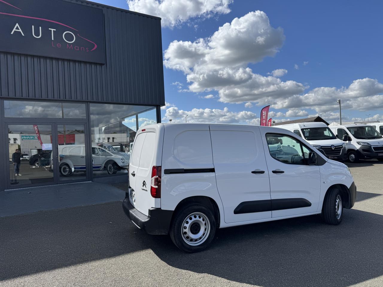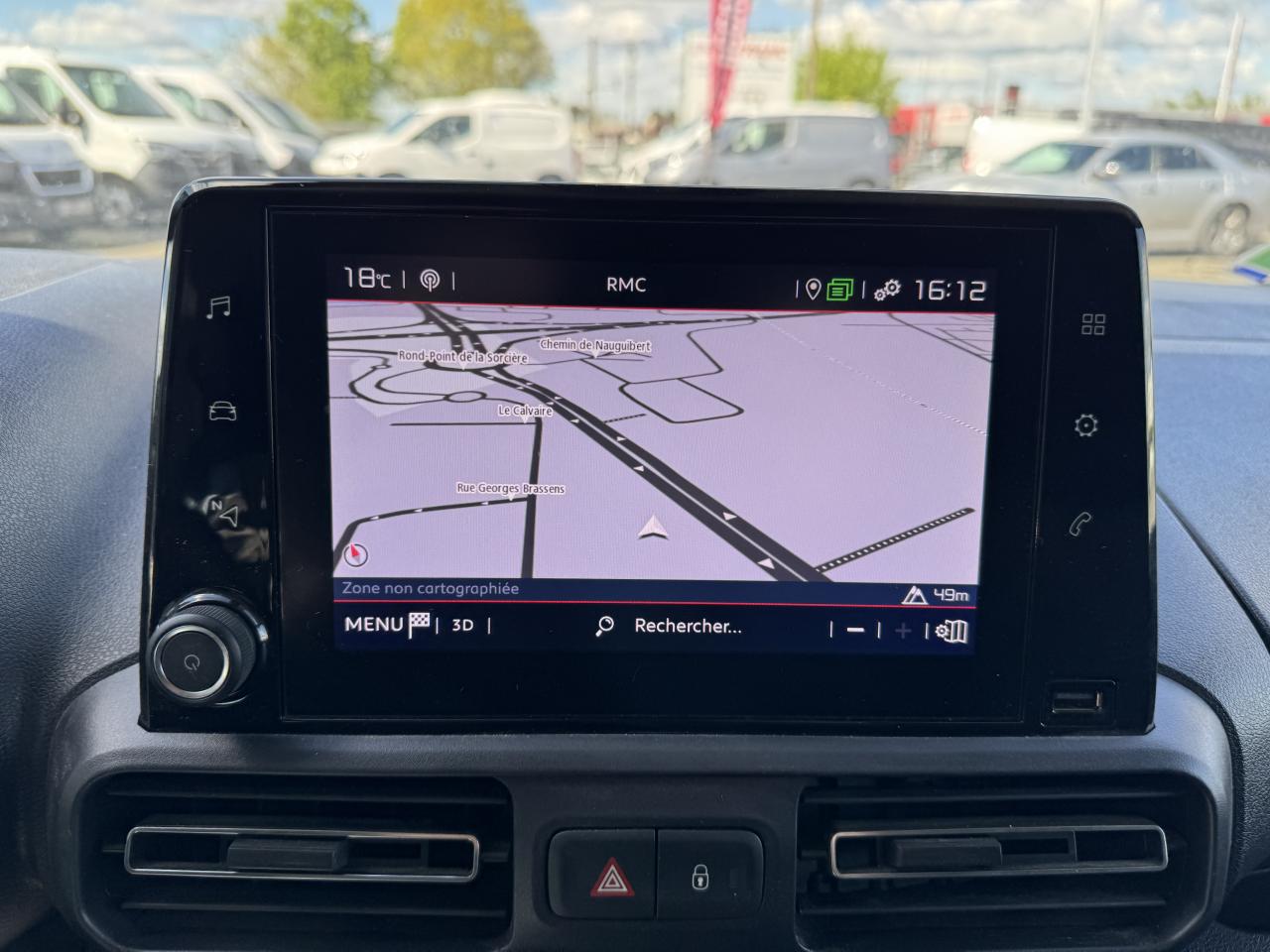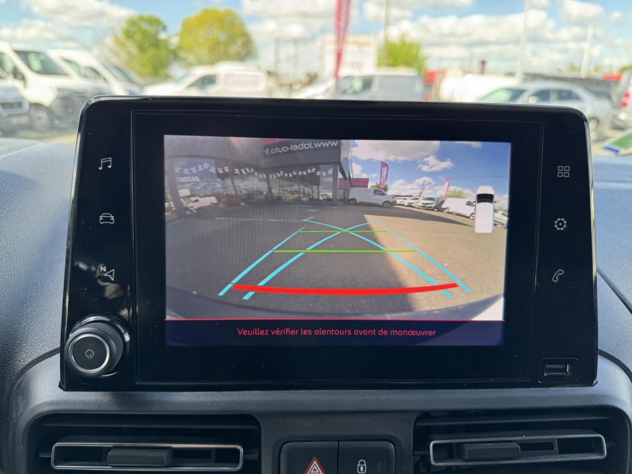 1 plip 3 boutons + 1 clé simple6 anneaux d'arrimage en zone de chargementABS avec répartiteur électronique de freinage (REF) et aide au freinage d'urgence (AFU)Aide au démarrage en côteAirbag frontal conducteurAllumage automatique des projecteursBac de porte avantBaguettes de protection latérales noires teintées masseBoîte à gants inférieure ferméeBoîte à gants supérieure Top Box fermée (réfrigérée si climatisation)Bouchon / trappe à carburant verrouillablesCapucine transversale de rangement ouverteCitroën Connect Nav sur tablette tactile 8" avec Mirror ScreenClimatisation manuelleCloison pleine fixe (avec crochet porte-habit)Contrôle dynamique de conduite (ESP) avec fonction anti-patinage (ASR)Coques de rétroviseurs noires teintées masseDétection de sous-gonflage indirecteEclairage d'accueil et d'accompagnementEssuie-glace à déclenchement automatiqueEssuie-vitre avant avec système de lavage 'Magic Wash'Frein de stationnement électriqueJantes tôle 16" grises avec cabochonKit mains libres Bluetooth et prise USBOrdinateur de bordPack acoustiquePare-chocs avant et arrière noirs teintés massePeinture opaque Blanc BanquisePneumatiques 205/60 R16Poignées de portes extérieures noires teintées massePorte latérale droite coulissante tôléePortes arrières battantes tôlées 60/40 avec ouverture à 180°Prise 12 V sur planche de bordProjecteurs antibrouillardRadio Numérique DABRails de PLC avec enjoliveurs noirs teintés masseRangement fermé derrière le combinéRégulateur et limiteur de vitesseRétroviseurs extérieurs rabattables électriquement et lève-vitres avant électriques séquentielsRétroviseurs extérieurs réglables électriquement et dégivrantsRevêtement moquette dans l'habitacleRoue de secours homogèneSellerie tissu Mica GreySiège conducteur confort avec réglage en hauteur, réglage lombaire, rangement sous siège et accoudoirSiège passager réglableSurround Rear Vision : l'aide au stationnement avant et arrière, la caméra de recul, et la surveillance de l'environnement arrière et latéral passager avec restitution sur un écran 5'' dédié à la place du rétroviseur Volant mousséVolant multifonctionsVolant réglable en hauteur et en profondeurZone de dépose pour smartphone