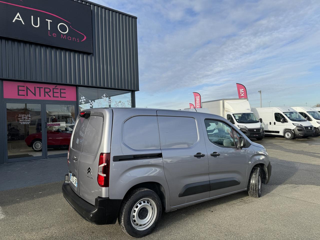 6 anneaux d'arrimage en zone de chargementABS avec répartiteur électronique de freinage (REF) et aide au freinage d'urgence (AFU)Aide au démarrage en côteAirbag frontal conducteurAllumage automatique des projecteursBac de porte avantBaguettes de protection latérales noires teintées masseBoîte à gants inférieure ferméeBoîte à gants supérieure Top Box fermée (réfrigérée si climatisation)Bouchon / trappe à carburant verrouillablesCapucine transversale de rangement ouverteCITROËN Connect Box avec Pack SOS et assistance inclusCitroën Connect Nav sur tablette tactile 8" avec Mirror ScreenClimatisation manuelleCloison pleine fixe (avec crochet porte-habit)Condamnation centralisée avec plip 3 boutonsContrôle dynamique de conduite (ESP) avec fonction anti-patinage (ASR)Coques de rétroviseurs noires teintées masseDétection de sous-gonflage indirecteEclairage d'accueil et d'accompagnementEssuie-glace à déclenchement automatiqueEssuie-vitre avant avec système de lavage 'Magic Wash'Frein de stationnement électriqueJantes tôle 15'' grises avec cabochonKit mains libres Bluetooth et prise USBOrdinateur de bordPare-chocs avant et arrière noirs teintés massePeinture opaque Blanc BanquisePneumatiques 195/65 R15Poignées de portes extérieures noires teintées massePorte latérale droite coulissante tôléePortes arrières battantes tôlées 60/40 avec ouverture à 180°Prise 12 V sur planche de bordProjecteurs antibrouillardRails de PLC avec enjoliveurs noirs teintés masseRangement fermé derrière le combinéRégulateur et limiteur de vitesseRétroviseurs extérieurs rabattables électriquement et lève-vitres avant électriques séquentielsRétroviseurs extérieurs réglables électriquement et dégivrantsRevêtement moquette dans l'habitacleRoue de secours homogèneSellerie tissu Mica GreySiège conducteur confort avec réglage en hauteur, réglage lombaire, rangement sous siège et accoudoirSiège passager individuel réglable en inclinaison et en longueurSurround Rear Vision : l'aide au stationnement avant et arrière, la caméra de recul, et la surveillance de l'environnement arrière et latéral passager avec restitution sur un écran 5'' dédié à la place du rétroviseur Volant mousséVolant multifonctionsVolant réglable en hauteur et en profondeurZone de dépose pour smartphone