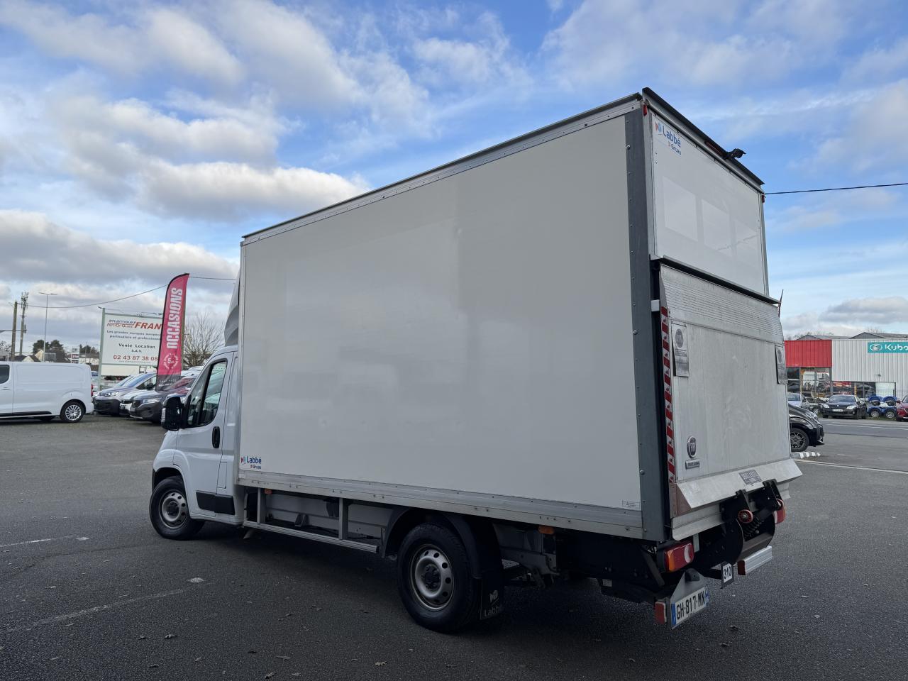 1 hayon élévateur rabattable, DHOLLANDIA, 2 vérins, 750 kgs, plateforme 1450 mm + Fanions FIAT Professional1 porte outils 3 emplacements2 butoirs caoutchouc de protection en parie basse du cadre arrière,ABS (Antiblocage de roues)Ailes enveloppantes en matériau compositeAirbag Fiat conducteurAntenne radio incorporé au rétroviseurArceaux en profils aluminium rivetés au cadreAttelage mixteAuvent arrière relevableBanquette passager biplaceBarres anti-cycle latérales en profil acier galvanisé conforme à la règlementationCadre arrière renforcé en acier galvanisé, sangle montoir côté droitCadre constitué de profils aluminium soudé aux anglesCapucineCentrale connexion pour transformationChauffage de la cabineClimatisation manuelleComposite multiplis bois antidérapant, épaisseur 12mm, monoblocContrôle dynamique de stabilité (ESP)Cornière aluminium de protection sur toute la périphérieFace avant et faces latérales en panneau en composite 17 couleur blancFaisceau électrique rallongéFeux de signalisation rouges aux angles supérieurs arrièreGrilles de feuxJantes en acier 16"Lève-vitres électriquesMoulures/Protection de rouesPack MIXTEParement polyester uniforme et translucide collé sur la structurePort USBPorte échelle acier tôlé grillagé gavaniséPrédisposition batterie additionnellePrédisposition caméra de reculRégulateur et limiteur de vitesseRétroviseurs extérieurs électriques et dégivrantsRétroviseurs extérieurs gabarits 2,20 mRoue de secours avec outilsSiège conducteur avec accoudoirSignalisation latérale lumineuse (feux orange) conforme à la réglementationStructure portante constituée de longerons et de traverses galvanisés assemblés par rivelonnageSuspensions AR bilame renforcésUConnect 5"Verrouillage centralisé à distanceVolant réglable en hauteur