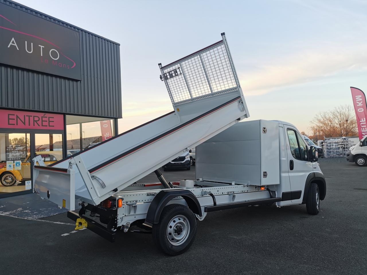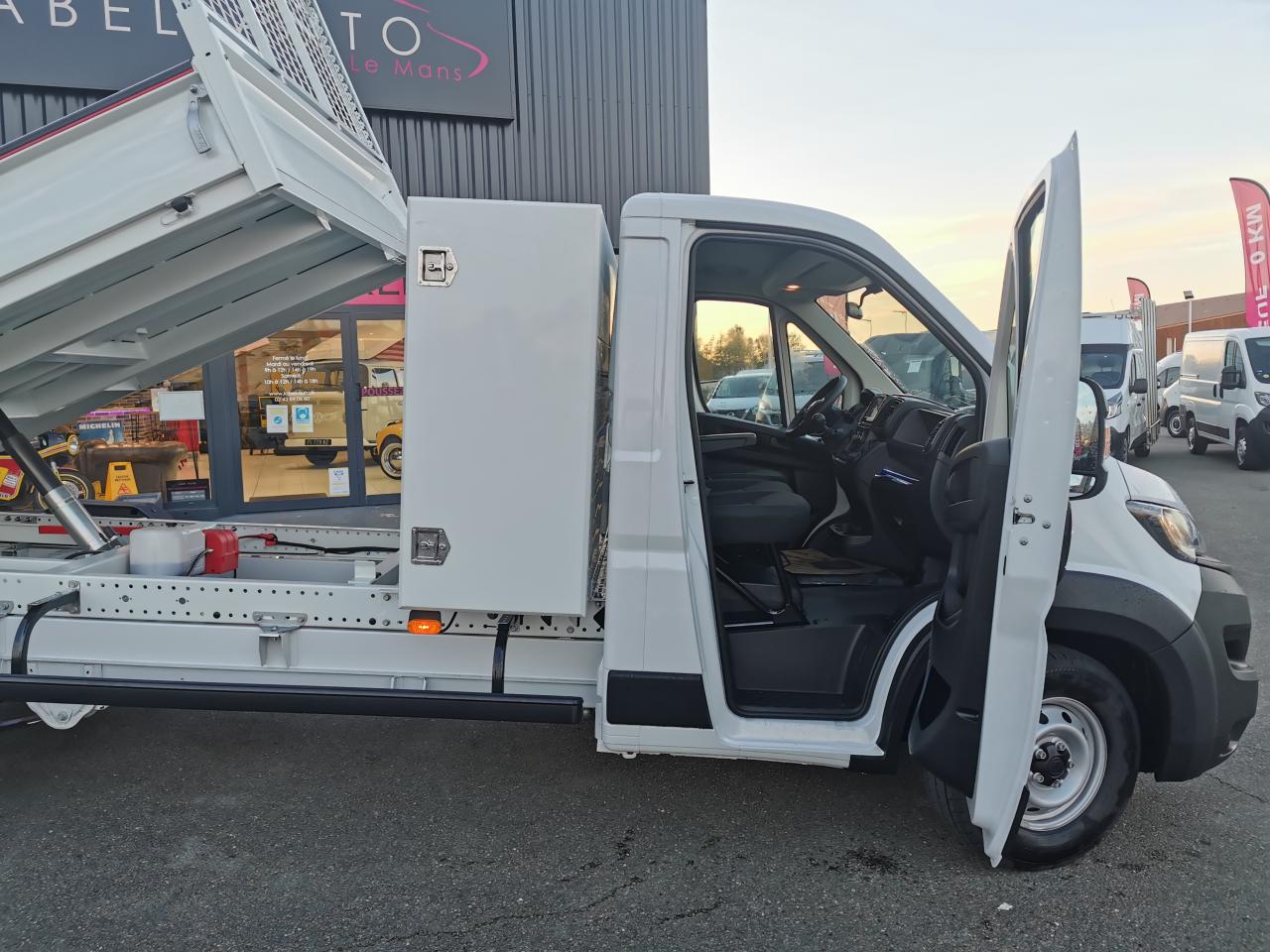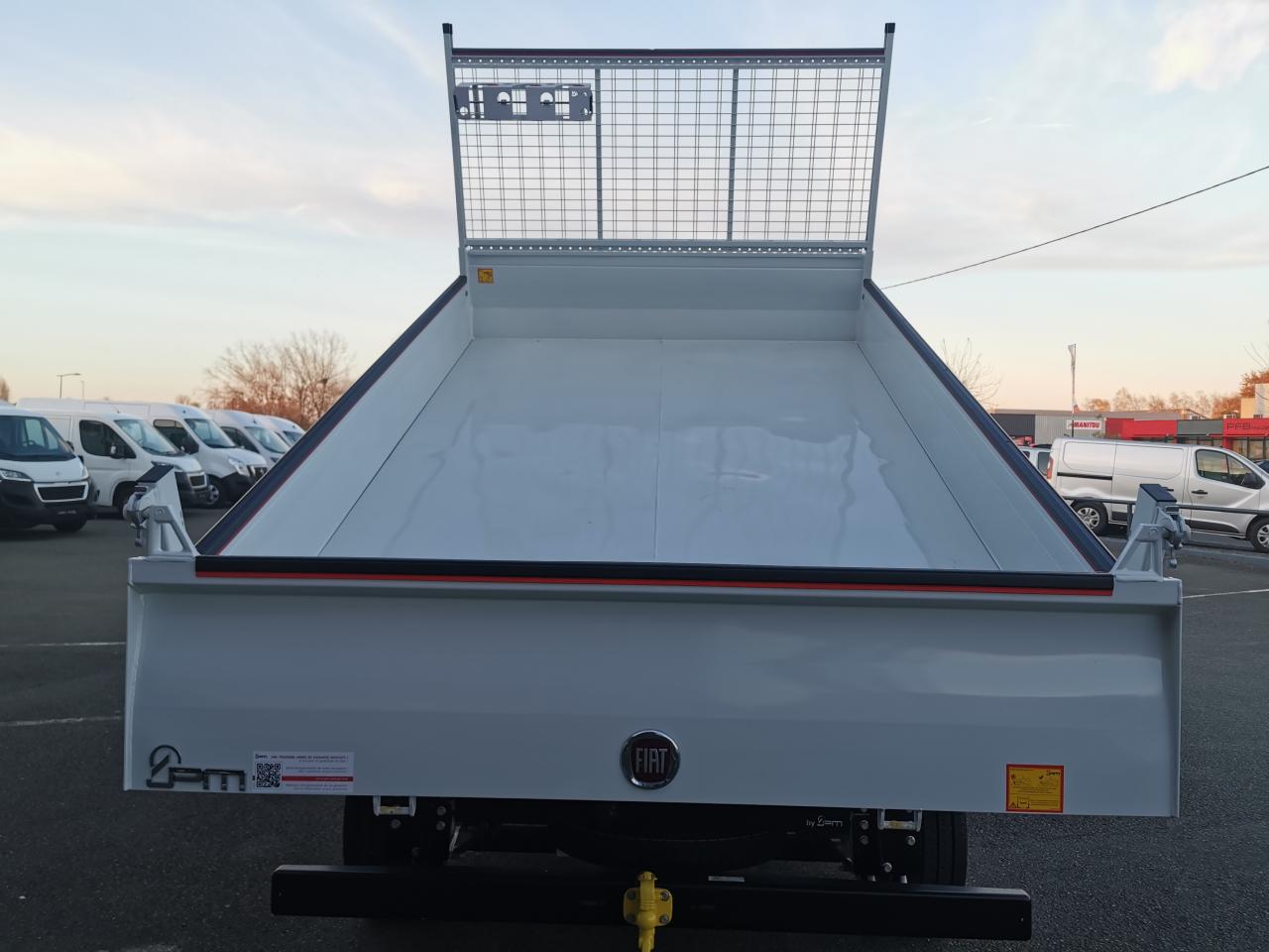 1 porte outils 3 emplacementsABS avec aide au freinage d'urgenceAirbag conducteurAirbag passagerAntenne radioAppui-têtes pleinsBanquette passager biplaceBarre Anti Encastrement pare-cyclesBavettesBennage par vérin - Angle de basculement 48°Béquille de sécuritéBluetoothBoitier Télématique Autonome (BTA)Bord de rive adapté au sanglageButées d’ouverture en caoutchouc sur ridelles et porte arrièreCaméra de reculCapteur de pression des pneumatiquesCapucine de rangementClimatisation manuelleCondamnation centralisée avec plipDirection assistée électriqueESP incluant l'antipatinage ASR et l'aide au démarrage en penteFeux AR inclus non montésFeux avant diurnesFeux de signalisation latérauxFond de benne en tôle acier HX500 galvaniséeGrand coffre Acier dos cabine 600x1300x2000Grille de protection des feux arrièresKit de réduction de CO2Lève-vitres électriques avant avec séquentiel montée / descente et antipincement côté conducteurPack Chantier MaxiPack Roue de secoursPack Sécurité (ADAS)Pack TransformationPare-choc avant grainéPeinture Pastel BlancPort USBPorte arrière en acier htr 450mm à ouverture automatique par came à 15°Porte-à-faux de bennage court : 250 mmPorte-gobelets au milieu du tableau de bordPoteaux arrière amovibles, avec boulon de fixation de resserrage et emmanchement coniquePrédisposition attelageProjecteurs halogèneProtections ridelles, porte AR et porte-échelle en PVCProtège-cabine en acier galvanisé grillagéRadio Numérique DABRappel de bouclage de ceintureRégulateur et limiteur de vitesseRéservoir d'urée (AdbLue) de 19lRéservoir de 90 litresRétroviseurs extérieurs électriques et dégivrantsRidelles latérales htr 350mm rabattables, amovibles, interchangeablesRoues acier 16"Sellerie tissu crêpe noirSiège conducteur réglable en hauteur avec réglage lombaire et accoudoirSystème audio 5''Télécommande filaire dans cabineVitres avant électriques séquentielles (à la descente côté passager)Volant réglable en hauteur