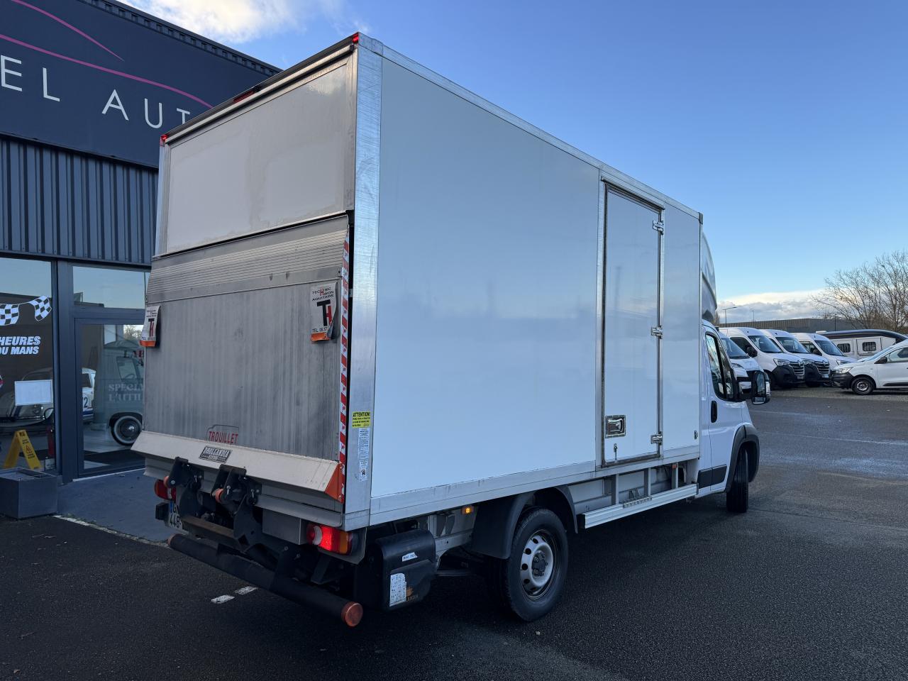 1 hayon élévateur rabattable, DHOLLANDIA, 2 vérins, 750 kgs, plateforme 1450 mm + Fanions FIAT Professional1 porte outils 3 emplacements2 butoirs caoutchouc de protection en parie basse du cadre arrière,ABS (Antiblocage de roues)Ailes enveloppantes en matériau compositeAirbag Fiat conducteurAntenne radio incorporé au rétroviseurArceaux en profils aluminium rivetés au cadreAttelage mixteAuvent arrière relevableBanquette passager biplaceBarres anti-cycle latérales en profil acier galvanisé conforme à la règlementationCadre arrière renforcé en acier galvanisé, sangle montoir côté droitCadre constitué de profils aluminium soudé aux anglesCapucineCentrale connexion pour transformationChauffage de la cabineClimatisation manuelleComposite multiplis bois antidérapant, épaisseur 12mm, monoblocContrôle dynamique de stabilité (ESP)Cornière aluminium de protection sur toute la périphérieFace avant et faces latérales en panneau en composite 17 couleur blancFaisceau électrique rallongéFeux de signalisation rouges aux angles supérieurs arrièreGrilles de feuxJantes en acier 16"Lève-vitres électriquesMoulures/Protection de rouesPack MIXTEParement polyester uniforme et translucide collé sur la structurePort USBPorte échelle acier tôlé grillagé gavaniséPrédisposition batterie additionnellePrédisposition caméra de reculRégulateur et limiteur de vitesseRétroviseurs extérieurs électriques et dégivrantsRétroviseurs extérieurs gabarits 2,20 mRoue de secours avec outilsSiège conducteur avec accoudoirSignalisation latérale lumineuse (feux orange) conforme à la réglementationStructure portante constituée de longerons et de traverses galvanisés assemblés par rivelonnageSuspensions AR bilame renforcésUConnect 5"Verrouillage centralisé à distanceVolant réglable en hauteur