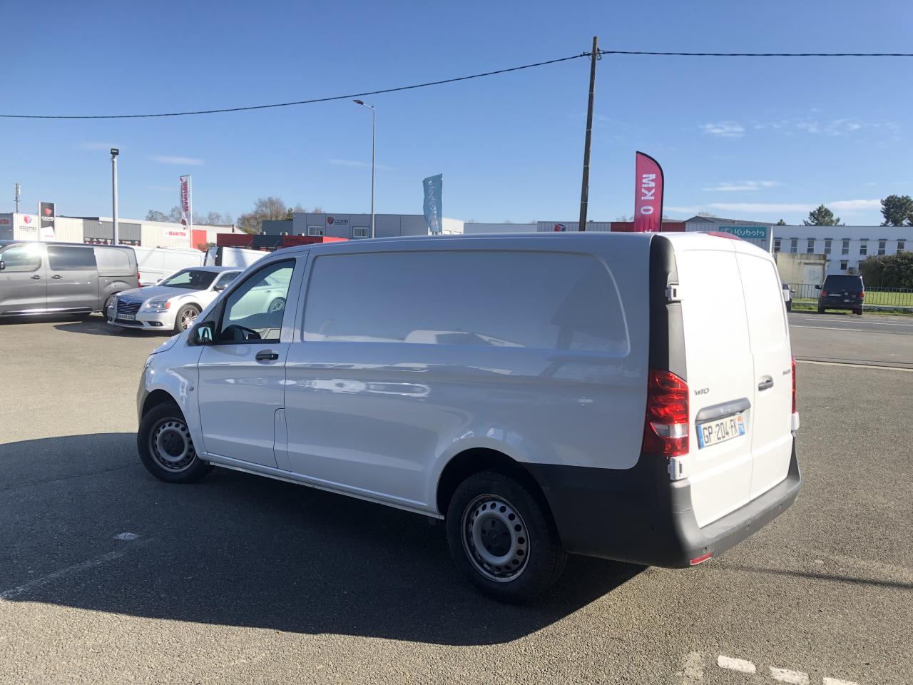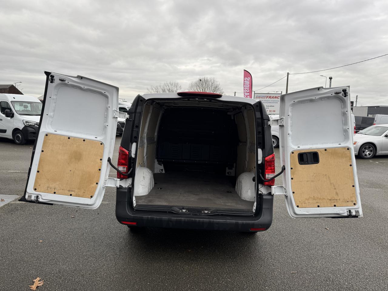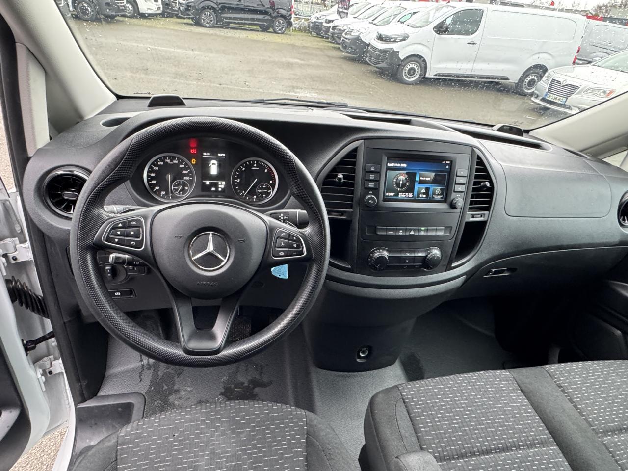 Affichage de la pression des pneumatiquesAide au démarrage en côteAirbag passager avantAlarme de non bouclage de ceinture passagerAllumage automatique des projecteursAssistance en cas de panneAttention Assist : système de détection de somnolenceAudio 30 : écran tactile 7 pouces, bluetooth et intégration smartphone (Apple CarPlay et Android Auto)Banquette passager AV 2 placesBatterie de puissance accrueBatterie tampon pour démarrageBoîte à gants verrouillableBoîte de vitesses automatique à 9 rapports 9G-TRONICCapteur de pluieCloison entière de séparationCombiné d'instruments avec affichage matriciel à pixelsEcrous à souder sur paroi latérale pour équipementsFeux stops adaptatifsFonction Stop/Start ECOHabillage intérieur latéral hauteur pleineHaut-Parleur à deux voies avantIntervalle de maintenance 40 000 kmJantes en acier 6,5 J x 16"Module de communication (LTE) pour services numériquesPack BlueEFFICIENCYPeintures standardPneumatiques 195/65 R16Pneumatiques sans prescription de marquePneus étéPoids total admissible 2800 kgPortes arrière battantes ouverture à 180 degrés sans fenêtrePré-équipement Remote Services PlusPrédisposition faisceau d'attelageRéservoir de 70 litresRétroviseurs extérieurs chauffants à réglage électriqueRadio Numérique DABRoue de secours + cricSellerie Tissu Caluma noirSiège conducteur confortSystème d'Appel d'Urgence Mercedes-BenzSystème de dépollution des gaz SCR génération 3Télécommande radio multi-touchesTEMPOMAT (régulateur et limiteur de vitesse)Train de roulementVitres teintéesVolant multifonctions et ordinateur de bordVolant réglable en hauteur et inclinaison