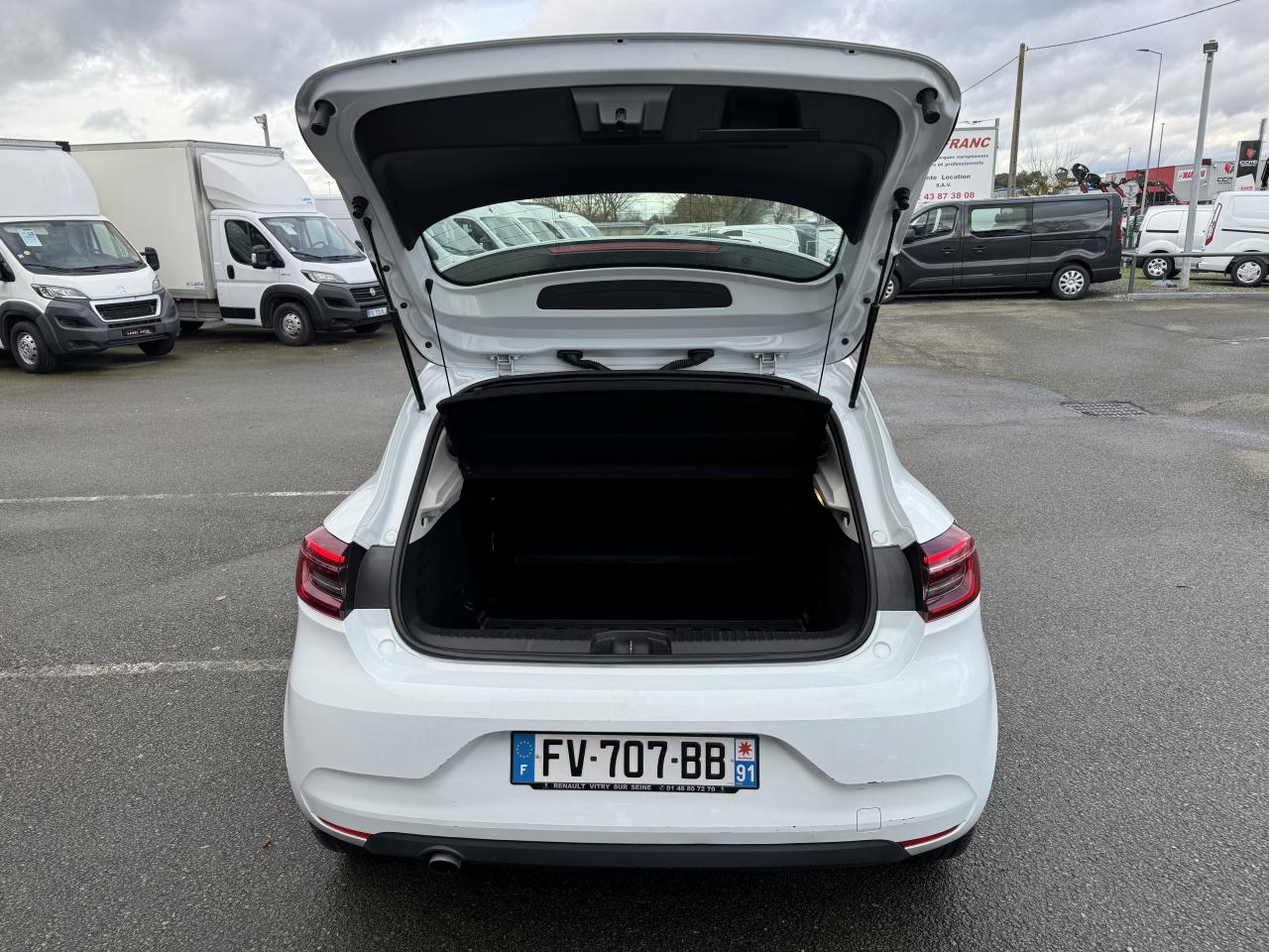 6 haut-parleursABS avec aide au freinage d'urgenceAide au démarrage en côteAide au stationnement arrièreAirbags frontaux conducteur et passager adaptatifs (airbag passager déconnectable)Airbags rideaux de têtes aux places avant et arrièreAlerte de sortie de voie via une vibration dans le volantAlerte distance de sécuritéAlerte oubli des ceintures de sécurité aux 5 places avec détection des occupantsAllumage automatique des essuie-glacesAllumage automatique des projecteursAppuis-têtes avant fin et 3 appuis-têtes arrière réglables en hauteurAppuis-têtes avant fin réglables en hauteurAssistance au maintien de voieBaguette de protection de portes chroméeBanquette arrière rabattable 40/60BluetoothBouton d’appel d’urgence r-callBouton EV de passage en mode tout électriqueCeinture centrale arrière 3 points, avec prétensionneurCeintures de sécurité AV et latérales AR à prétensionneurs et limiteurs d'effortCeintures de sécurité avant réglables en hauteurCiel de pavillon en tissé gris chinéClé rétractable - fermeture centralisée à distance (clé de remplacement non rétractable)Climatisation manuelle commande noire avec anneaux chromésCoiffe de planche de bord en noirDirection assistée électrique variableDouble microphone pour conversation téléphonique de qualitéEasy link 7“ et navigation : système multimédia compatible Android Auto et Apple CarPlayEclairage diurne à LEDEclairage intérieur avant avec 2 liseuses halogèneEcran conducteur couleur 4,2” avec 2 compteurs analogiques (vitesse et compte-tours)Entourage des vitres latérales couleur noirESCFeux arrière à LEDFixation ISOFIX sur siège passager avantFixations Isofix et i-Size 2 sièges arrièreFrein à main manuelFreinage actif d'urgence avec détection des piétons et cyclistesInserts décoratifs sur le volant à effet "chromé-satiné"Jantes alliage diamantées noires 16" edirisJoncs chromés sur bandeau supérieur de calandreKit de réparation / regonflage de pneusLecture des panneaux de signalisationLève-vitres arrière électriques impulsionnelsLogo Renault chromé, avec bandeau supérieur de calandre Noir BrillantMode ECO avec bouton d'activationNavigation connectée avec cartographie EuropePack Ambiance Noir EvolutionPeinture Blanc GlacierPoignées de porte avant couleur carrosserieProjecteurs avant Full Led Pure VisionProtections inférieures de portes noires grainéesRadio Numérique DABRégulateur et limiteur de vitesseRétroviseur intérieur jour et nuitRétroviseurs extérieurs couleur noirRétroviseurs extérieurs électriques et dégivrantsSellerie tissu noir, avec motif chevrons et coussins latéraux embossésService Auto-Update - 3 ans inclusSièges avant confort (assise élargie et maintien latéral amélioré)Système de surveillance de pression des pneusVéhicule connecté 4G avec pack de données inclus pendant 3 ansVitres avant électriques avec descente et remontée à impulsionVitres latérales et lunette arrière surteintéesVolant mousséVolant multifonctionVolant réglable en hauteur et en profondeur