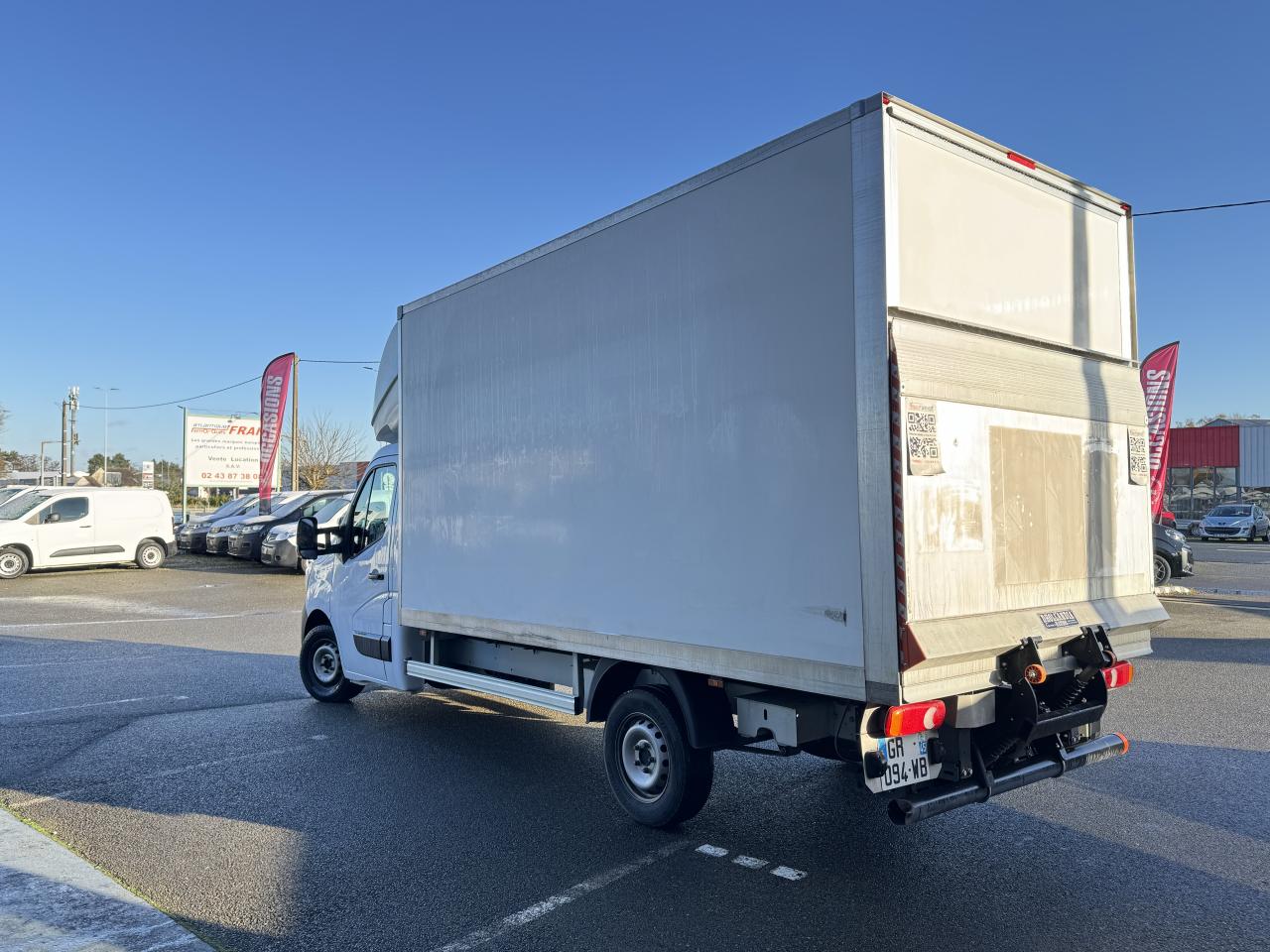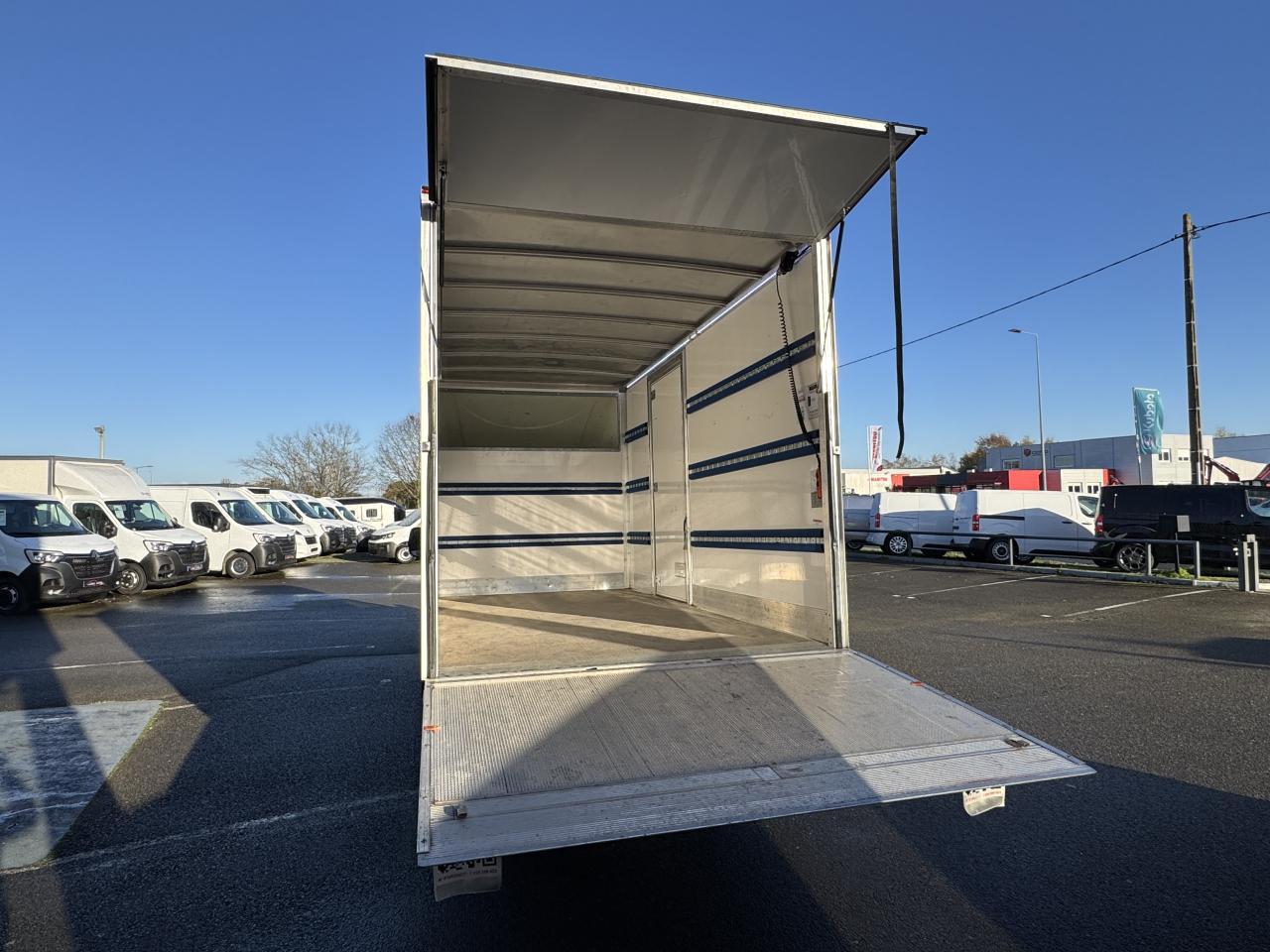 ABS avec répartiteur électronique de freinage EBV + assistance au freinage d'urgenceAirbag conducteur à retenue programméeAlternateur renforcé 230AAppuie-tête à toutes les placesBanquette passager avant dossier fixe, 2 placesBoîte à gants ferméeCâblage d'adaptation 16 voiesCâblage d'adaptations complémentaires (6 voies)Ceintures de sécurité avant 3 points, réglables en hauteur avec enrouleur pyrotechnique côté conducteurClimatisation manuelleCloison complète vitréeCondamnation centralisée des portes (clé 2 boutons)Déflecteur pavillonDirection assistéeEclairage sur pavillonESP + Extended Grip + Aide au démarrage en côteEssuie-glaces avant automatique avec détecteur de pluie et allumage automatique des feuxFeux de jour LED C-Shape intégrés aux projecteurs avantFiltre à pollenHabillage cloisonLève vitres avant électriques, impulsionnel à la descente côté conducteurMini étrier fixe arrière droitMode EcoOrdinateur de bord avec écran TFTPeinture Blanc MinéralPortes arrière battantesPré-disposition pour répétiteurs latéraux spécifiquesPrise 12 V sur planche de bordPrise auxiliaire USB sur la console centraleR-Plug&Radio DAB (Tuner, Bluetooth, USB, affichage intégré)Rack de pavillonRégulateur et limiteur de vitesseRéservoir AdBlueRétroviseur grand brasRétroviseurs dégivrantsRétroviseurs extérieurs électriques à double visionRoue de secours sous caisseRoues tôlées 16"Sellerie tissu carbone foncé KaleidoSiège conducteur à réglage lombaireSiège conducteur à réglage tridimensionnelSiège conducteur avec accoudoirSurlongueur de câblage pour feux arrièreSystème de stabilisation en cas de vent latéralTémoin d'alerte d'oubli ceinture conducteur et passagerTémoin de passage de vitessesVitres teintéesVolant réglable en hauteur