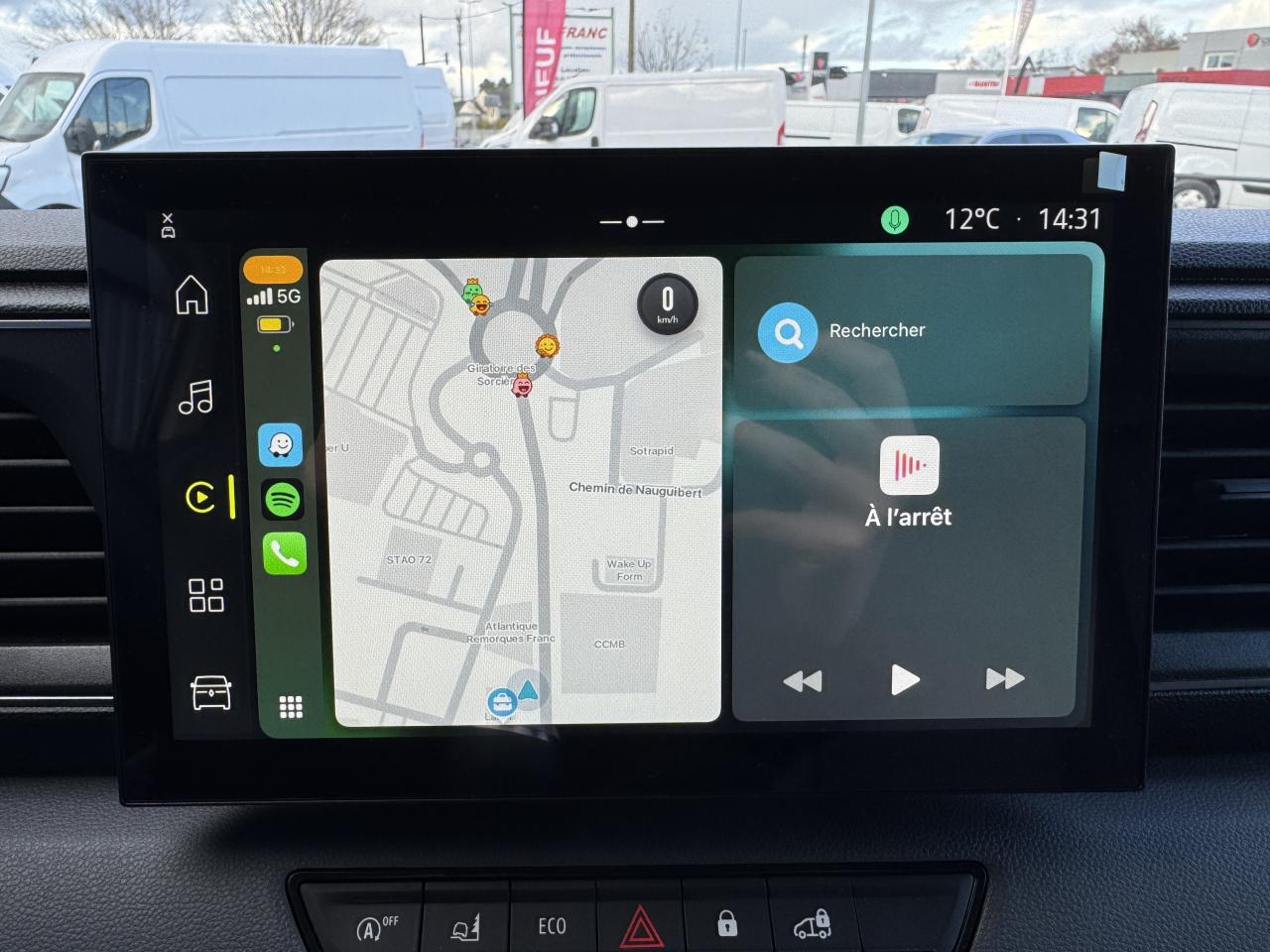 10 anneaux d’arrimage latéraux2 clés 3 boutons (1 repliable & fixe)Pack City6 anneaux d’arrimage rotatifs au solAide au démarrage en côteAide au stationnement arrièreAirbag conducteur frontalAlerte d'oubli de ceinture de sécuritéAlerte de franchissement de ligne avec maintien de voieAlerte de survitesse avec reconnaissance des panneaux de signalisationAllumage automatique des projecteursAssistant à la conduite d’une remorqueBanquette passager 2 places fixe avec rangement sous assiseBoîte à gants/tiroir Easy LifeBoîtier connecté AIVCCaméra de reculCeintures de sécurité avant 3 points, réglables en hauteur avec prétensionneur et limiteur d’effort (sauf place centrale)Chargeur de smartphone par inductionChauffageClimatisation automatiqueCloison tôléeCondamnation centralisée des portesContrôle de trajectoire électronique (ESP)EBV : Répartiteur électronique de freinageEclairage d'habitacle à LEDEnjoliveur de calandre couleur caisseEnjoliveurs chromés, intérieur : contours aérateurs et curseurs, pommeau de levier de vitesseEssuie-glace à déclenchement automatiqueExtended GripFreinage d'urgence automatiqueIsolation pour Cloison (thermique et acoustique)Jantes tôle 16” avec protection élargie vangoKit de réparation pneumatiqueLève-vitres avant électriques, à impulsion côté conducteurOpenR link 10" avec nav & services GoogleOuverture de porte arrière indépendantPack aménagement zone de chargementPack chrome intérieurPanneau latéral droit tôléPanneau latéral gauche tôléPanneaux latéraux arrière tôlésPeinture Blanc MinéralPoignée d’aide à la montéePorte latérale droite coulissante tôléePortes arrière tôlées ouvrant à 180°Précâblage attelagePrédisposition EthylotestProjecteurs Full LEDRangement fermé sur planche de bordRégulateur et limiteur de vitesseRéservoir 80 litresRétroviseurs extérieurs électriques et dégivrantsRétroviseurs extérieurs grand angleSellerie tissu chiné gris avec surpiqûres bleues et côté d’assise conducteur renforcé en textile enduit grainéSeuil de coffreSiège conducteur réglable 6 directions avec accoudoir et réglage lombaireSystème antiblocage des roues (ABS) & Assistance au freinage d'urgence (AFU)Système d'appel d'urgenceSystème de surveillance de la pression des pneumatiquesSystème de surveillance de la vigilance du conducteurTableau de bord avec combiné d’instrumentation digital TFT 3,5”Vitres teintéesVolant réglable en hauteur et en profondeur